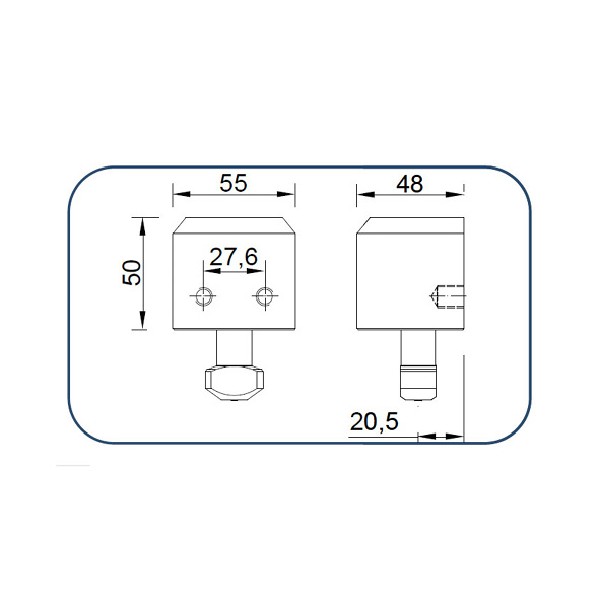Bombillo y vástago de acero inoxidable.