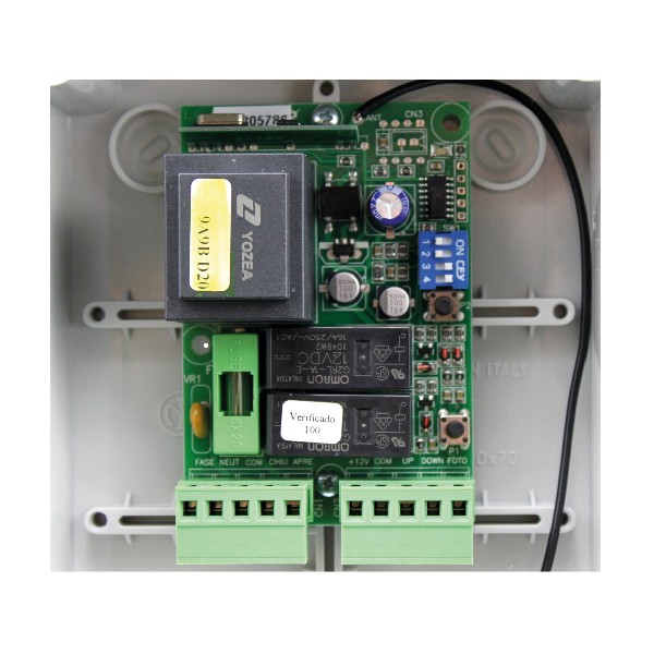 Cuadro de maniobra alimentado a 230V con radio integrada diseñado para motores de puertas enrollables.