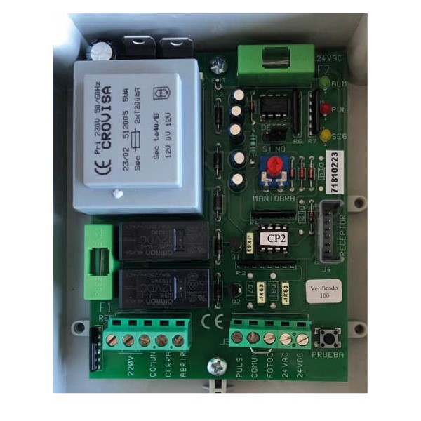 Cuadro de maniobra alimentado a 230V sin radio integrada diseñado para motores de puertas enrollables.