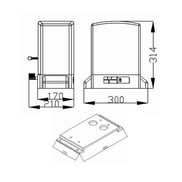 Motor electromecánico 230 Vac para puerta corredera de hasta 500 Kg.