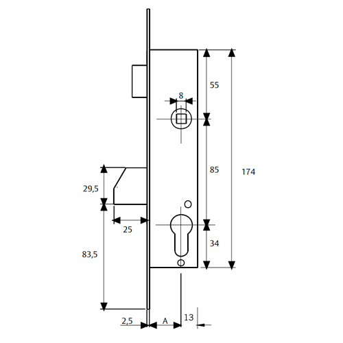 CERRADURA TESA 2210-30 mm 3AI ESCUDO E190 S/CERRADERO