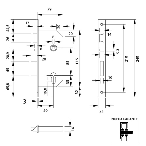 CERRADURA TESA 4030-F DE 60 MM C/R AI DCHA D/NUECA