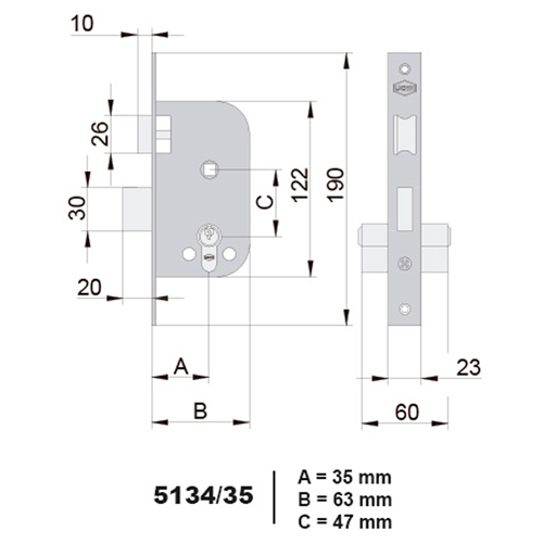 CERRADURA UCEM 5134 DE 40 MM C/C HL