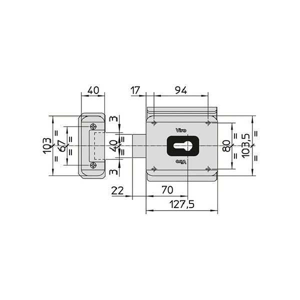 Electrocerradura VIRO V90 diseñada para ser instalada en puertas con apertura exterior.